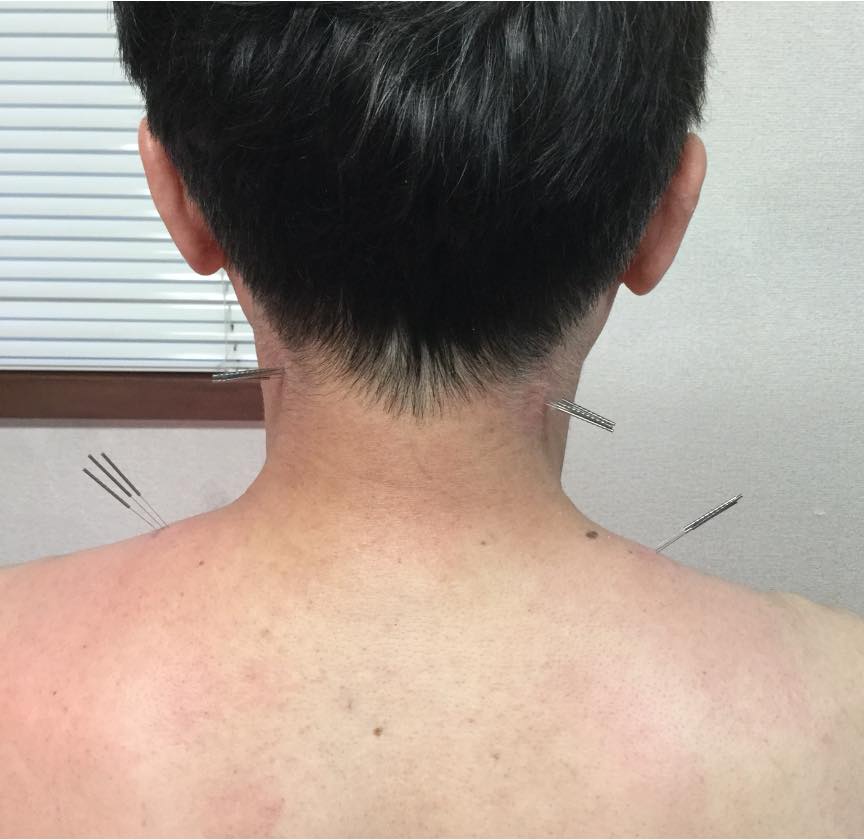 院長は僧帽筋の1本のラインに『電線の上にスズメが止まっているような感じで刺して欲しい。』器用なスタッフ、みんな簡単そうにポンポン、ポンポン鍼を打つ。